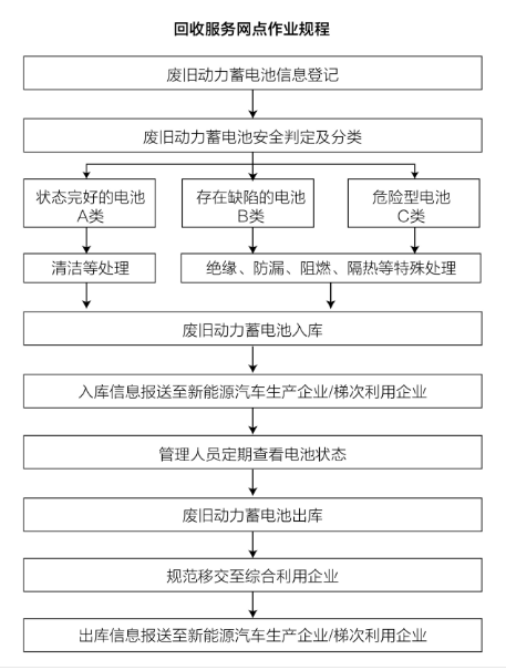 指南中規定了回收服務(wù)網(wǎng)點(diǎn)只負責收集、分類(lèi)、貯存及包裝廢舊動(dòng)力蓄電池,不得擅自對收集的廢舊動(dòng)力蓄電池進(jìn)行安全檢查外的拆解處理。廢舊動(dòng)力蓄電池應規范移交至綜合利用企業(yè)進(jìn)行梯次利用或再生利用?梢灶A見(jiàn),未來(lái)多數動(dòng)力電池回收網(wǎng)點(diǎn)都會(huì )是車(chē)企與梯次利用企業(yè)共建共用的。