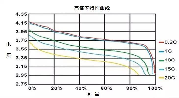 當倍率降低時(shí),電池的充放電速度會(huì )降低,充放電時(shí)間會(huì )延長(cháng),但充放電容量相對穩定,有利于延長(cháng)電池的循環(huán)使用壽命。圖1為某型號動(dòng)力鋰電池在不同放電倍率下的放電曲線(xiàn),鮮明地反映出放電倍率但電池容量、電壓的影響。