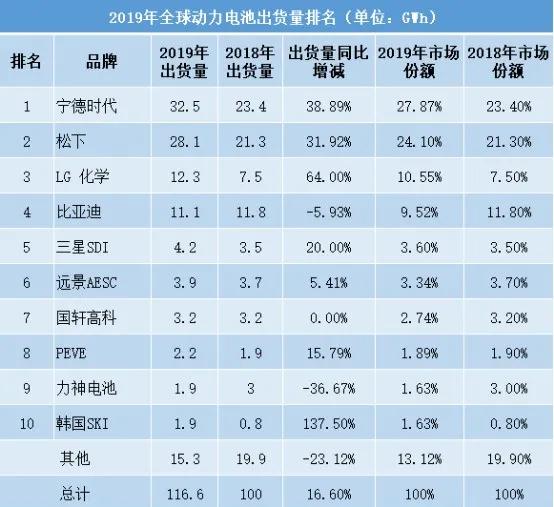 去年全球動(dòng)力電池出貨排名